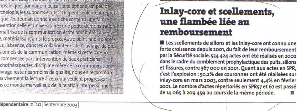 Mais pour confirmer ma corrélation entre maladies et dévitalisation dentaire, en France, j’ai encore un indice très intéressant. En 2002, il y a eu une mesure qui a encore plus incité les dentistes à dévitaliser les dents. La sécurité sociale s’est mise à rembourser assez bien, on peut le dire, les dispositifs d’ancrage intra-canalaire : les screw post (visse dans la racine) et les inlays cores (ou faux moignons ne se faisant que si ensuite il y aura une couronne). Ces dispositifs sont faits en résumé pour mieux renforcer les reconstructions dentaire, mais uniquement sur dents dévitalisées et c’est là tout le problème. C’est donc une incitation financière supplémentaire à dévitaliser les dents. L’année qui a suivie cette mesure, comme par hasard, il y a eu une augmentation phénoménales des inlays cores. Si vous voulez vérifier voila de quoi ici ou ici.